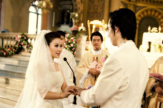ว่าจะทั้งคู่ยอมรับเป็นสามีภรรยาและรักษาสัญญาจนกว่าจะตายจากกันหลังจากกล่าวคำปฏิญาณ ก็จะเข้าสู่พิธีการสวมแหวน หรือพิธีแลกแหวน