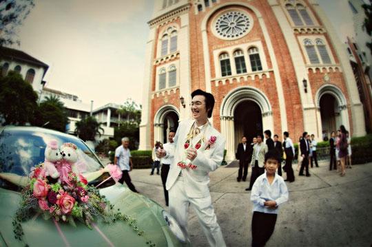 กับเจ้าสาว ขบวนนำโดยเด็กโปรยดอกไม้ เพื่อนเจ้าบ่าว